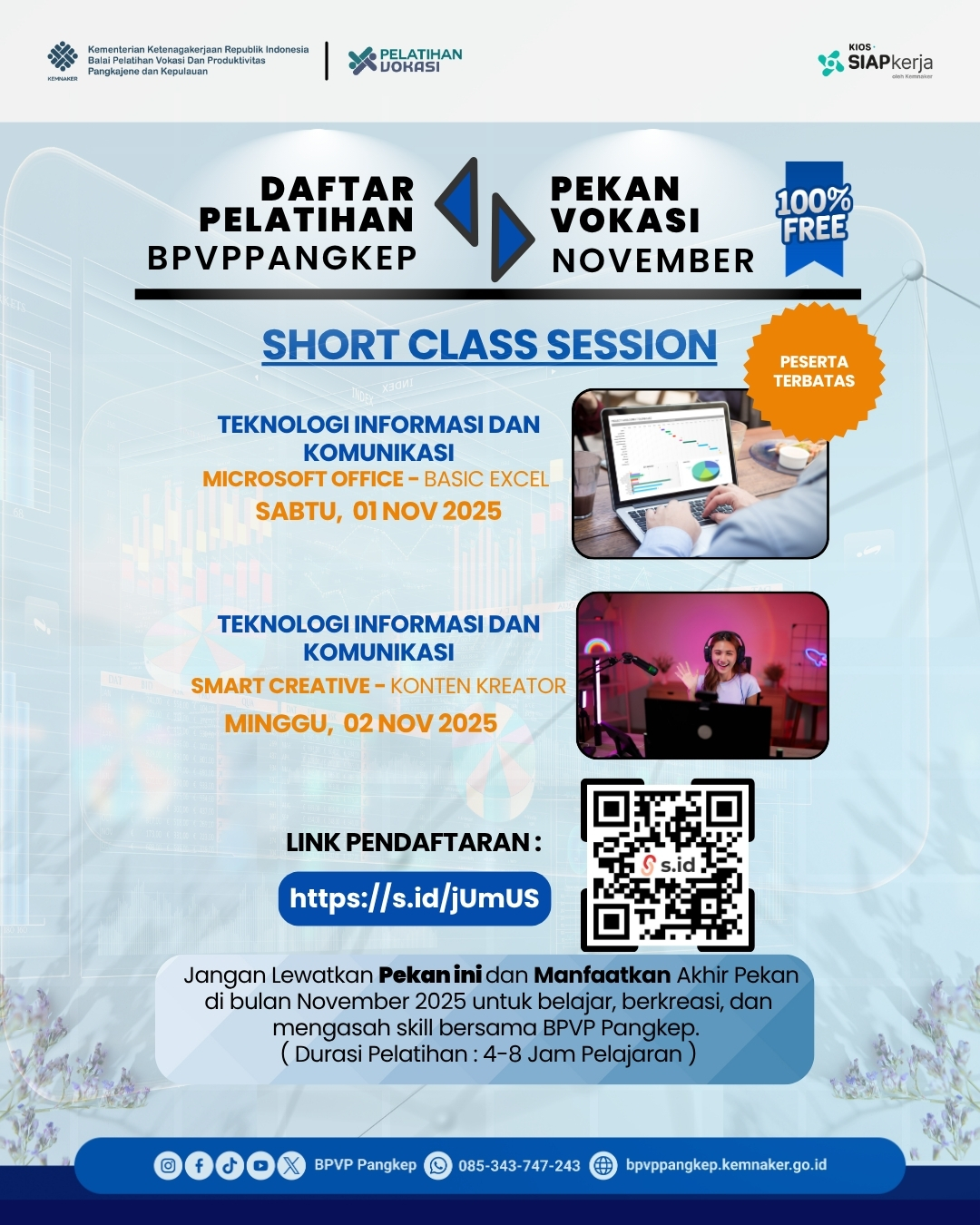 Jangan Sampai Nyesel! BPVP Pangkep Buka Short Class GRATIS di Pekan Vokasi November! ๐Ÿš€๐Ÿ’ป