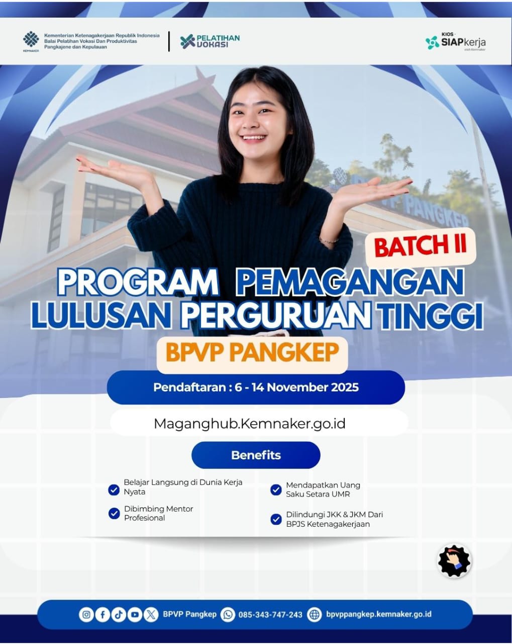 BPVP Pangkajene dan Kepulauan kembali membuka kesempatan bagi para lulusan Diploma dan Sarjana untuk bergabung dalam Program Pemagangan Nasional Batch 2 Tahun 2025...