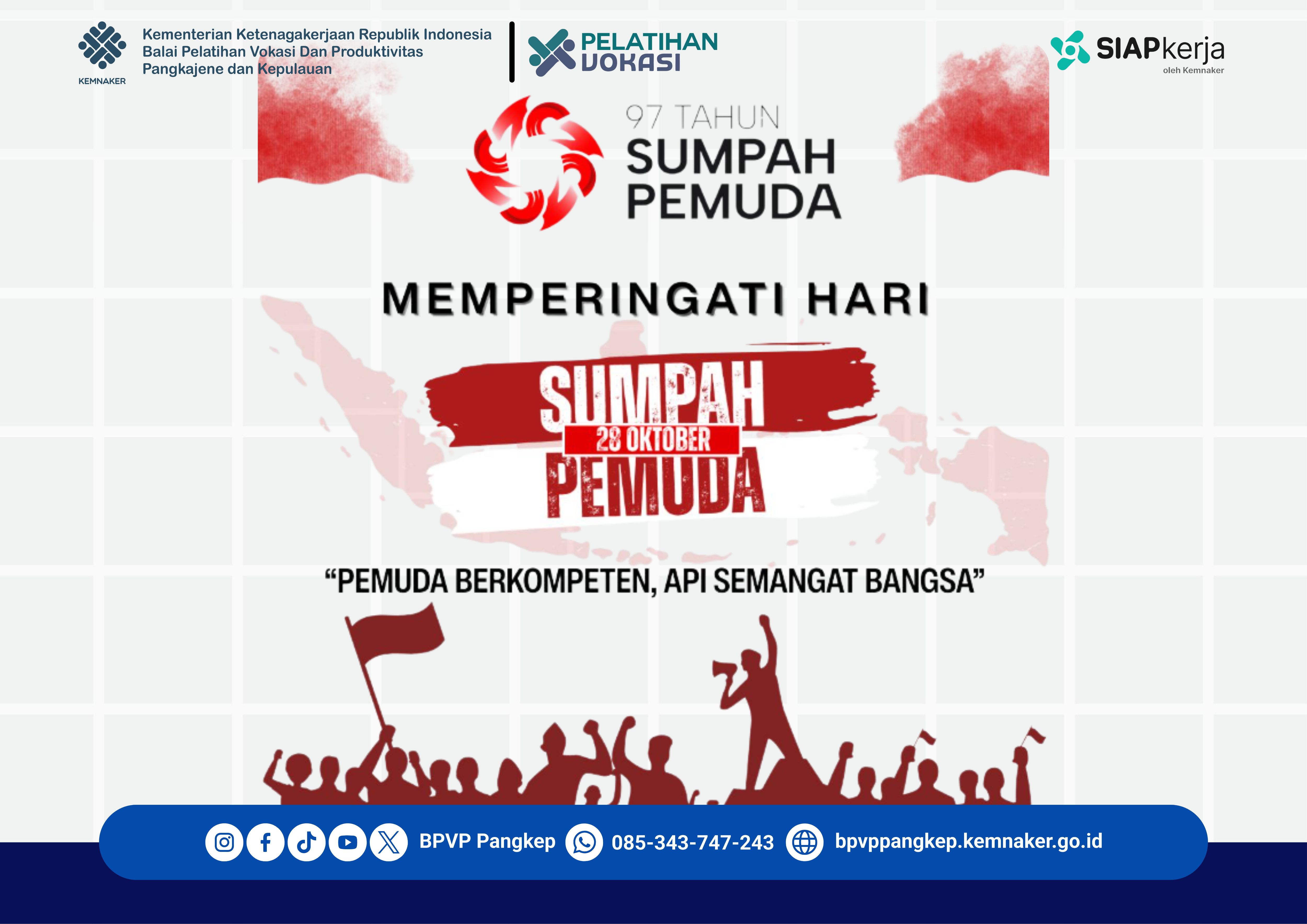 Pangkep, 28 Oktober 2025 โ€” Hari ini, tepat tanggal 28 Oktober 2025, seluruh Indonesia merayakan Hari Sumpah Pemuda yang ke-97! BPVP Pangkep (Balai Pelatihan Vokasi dan Produktivita...