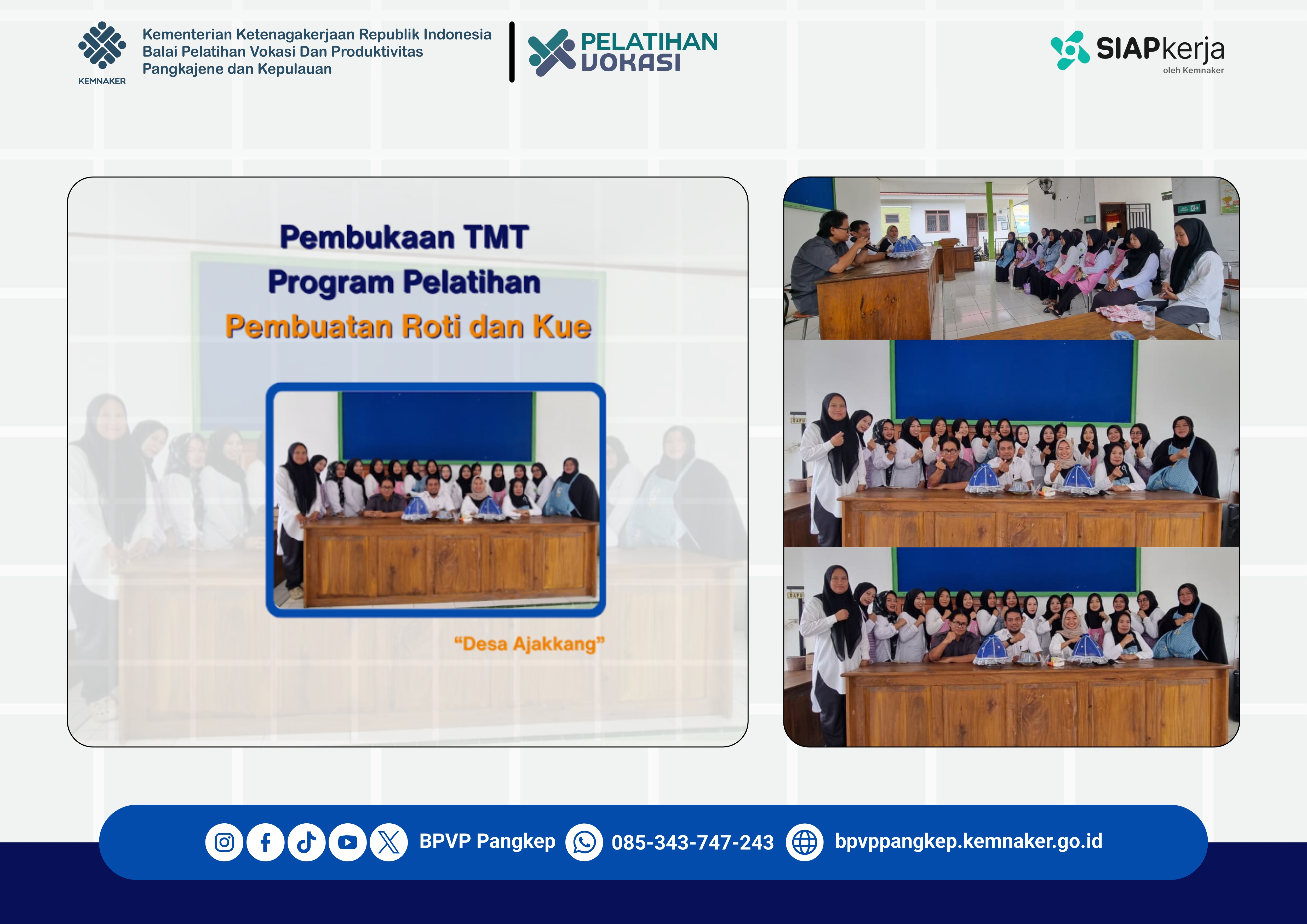 Desa Ajakkang, Barru, SUL-SEL โ Kesempatan jadi pengusaha kuliner kini makin dekat! BPVP Pangkep baru saja meresmikan pembukaan Program Pelatihan Pembuatan Roti dan Ku...