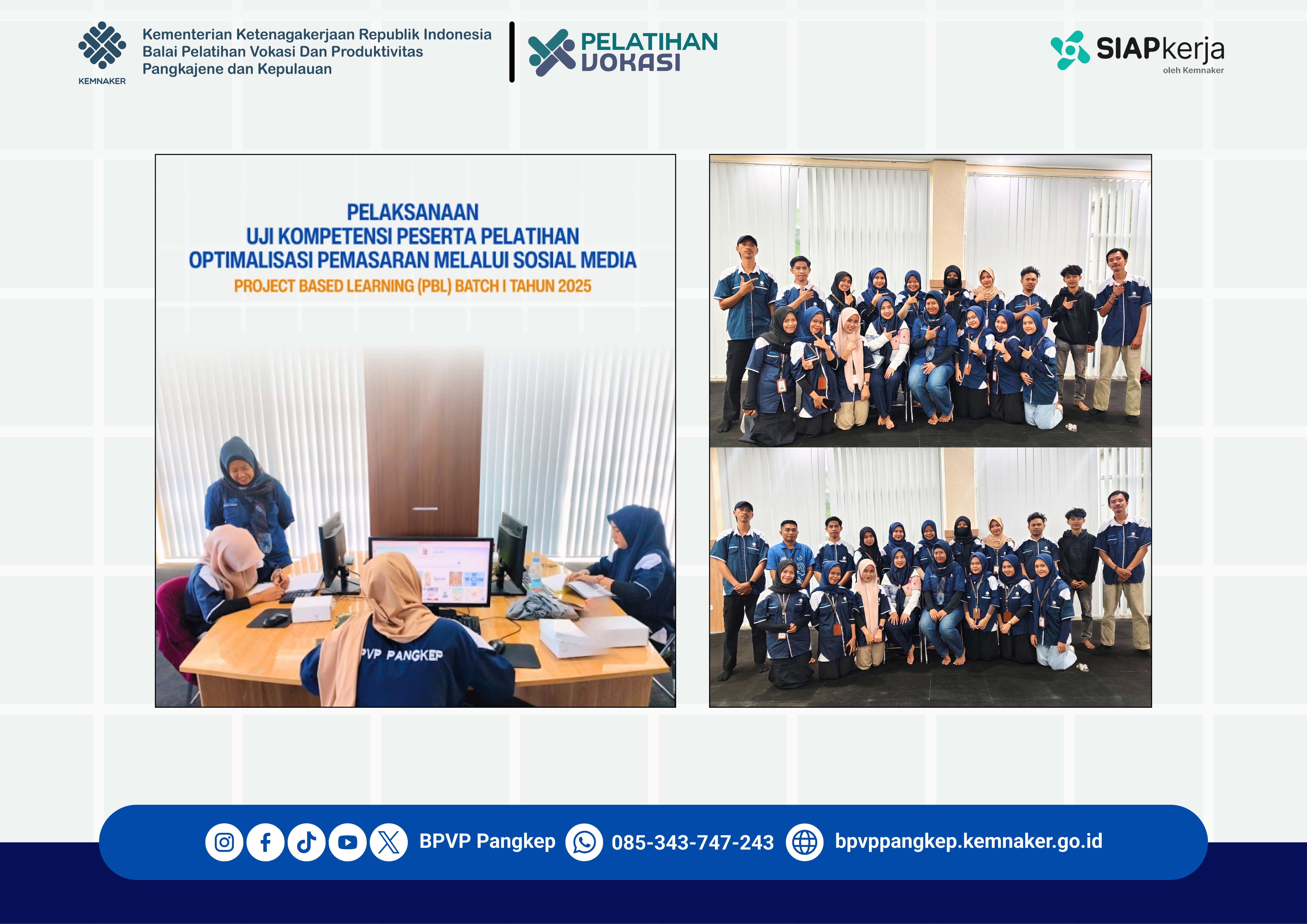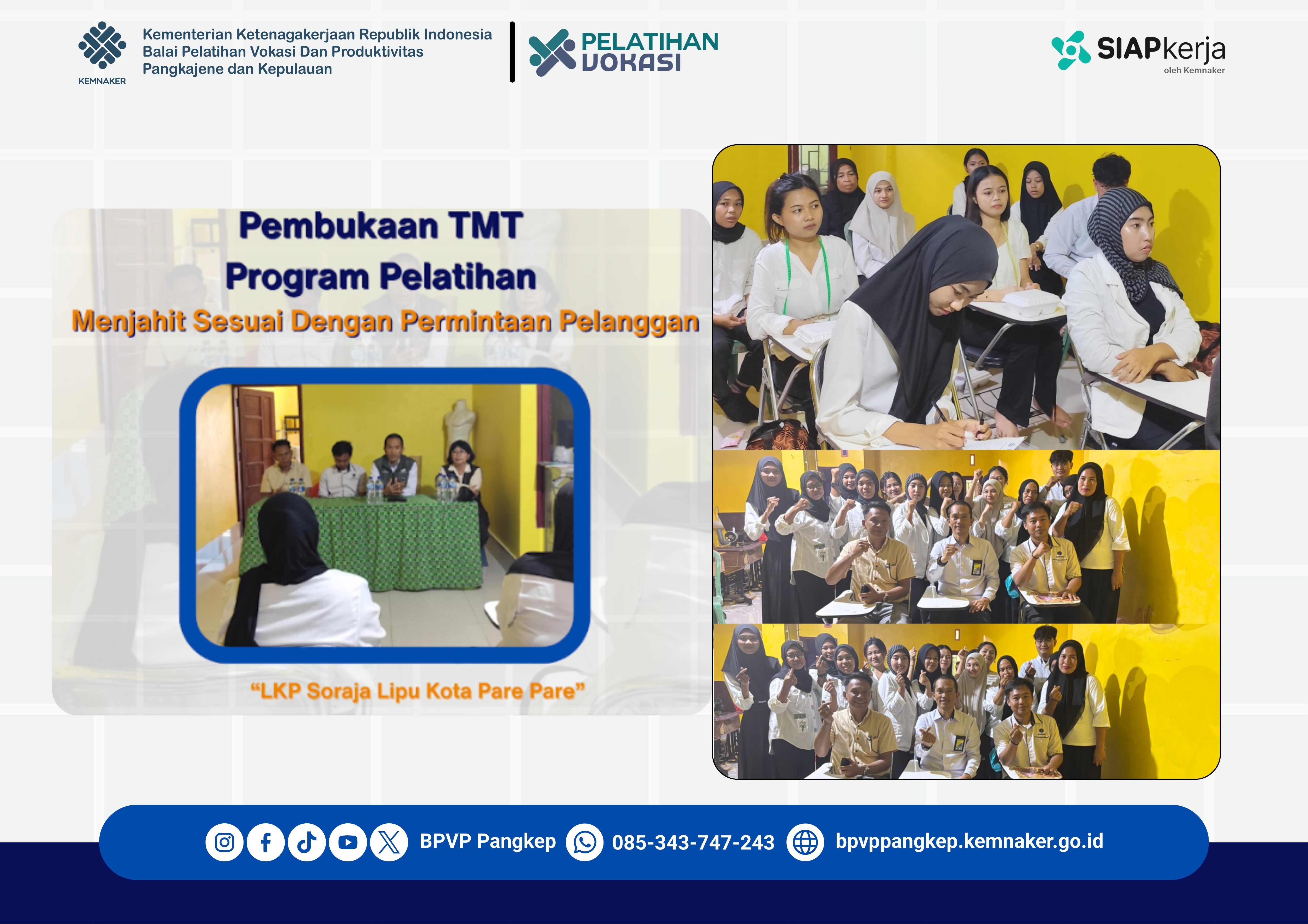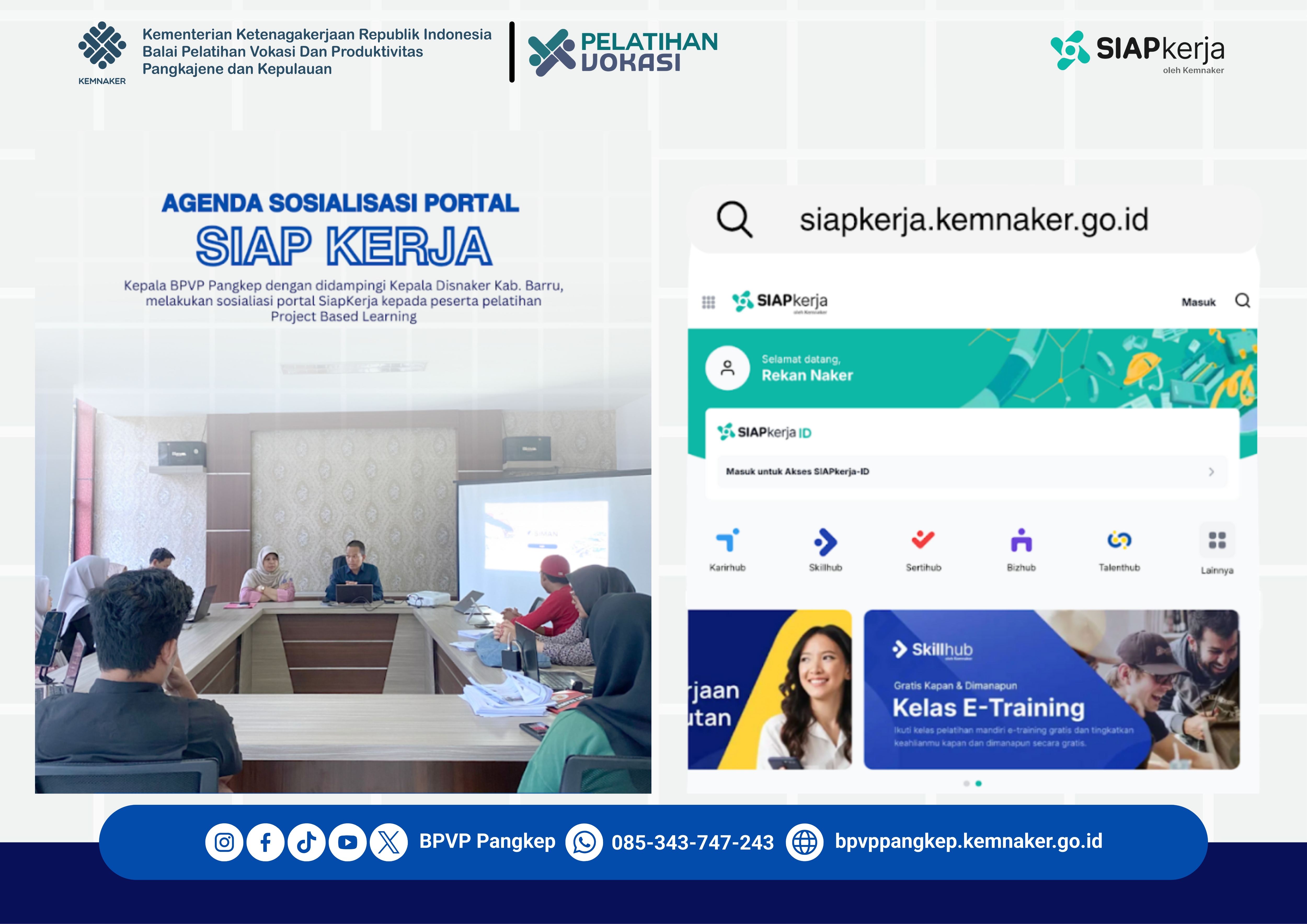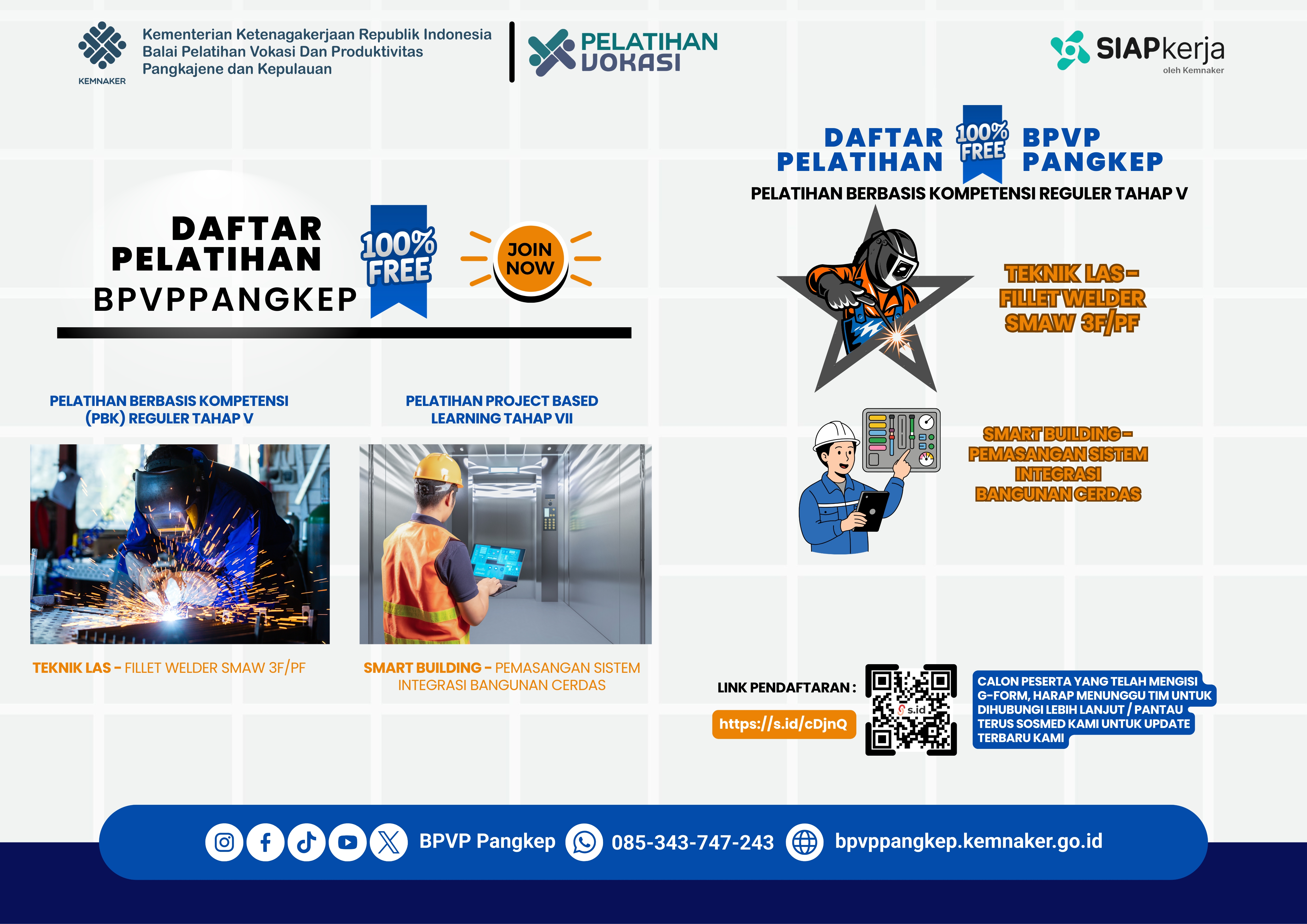 Pangkep, Siap Kerja โ Kabar gembira buat kamu yang lagi cari skill baru atau mau naik level! BPVP Pangkep (Balai Pelatihan Vokasi dan Produktivitas Pangka...