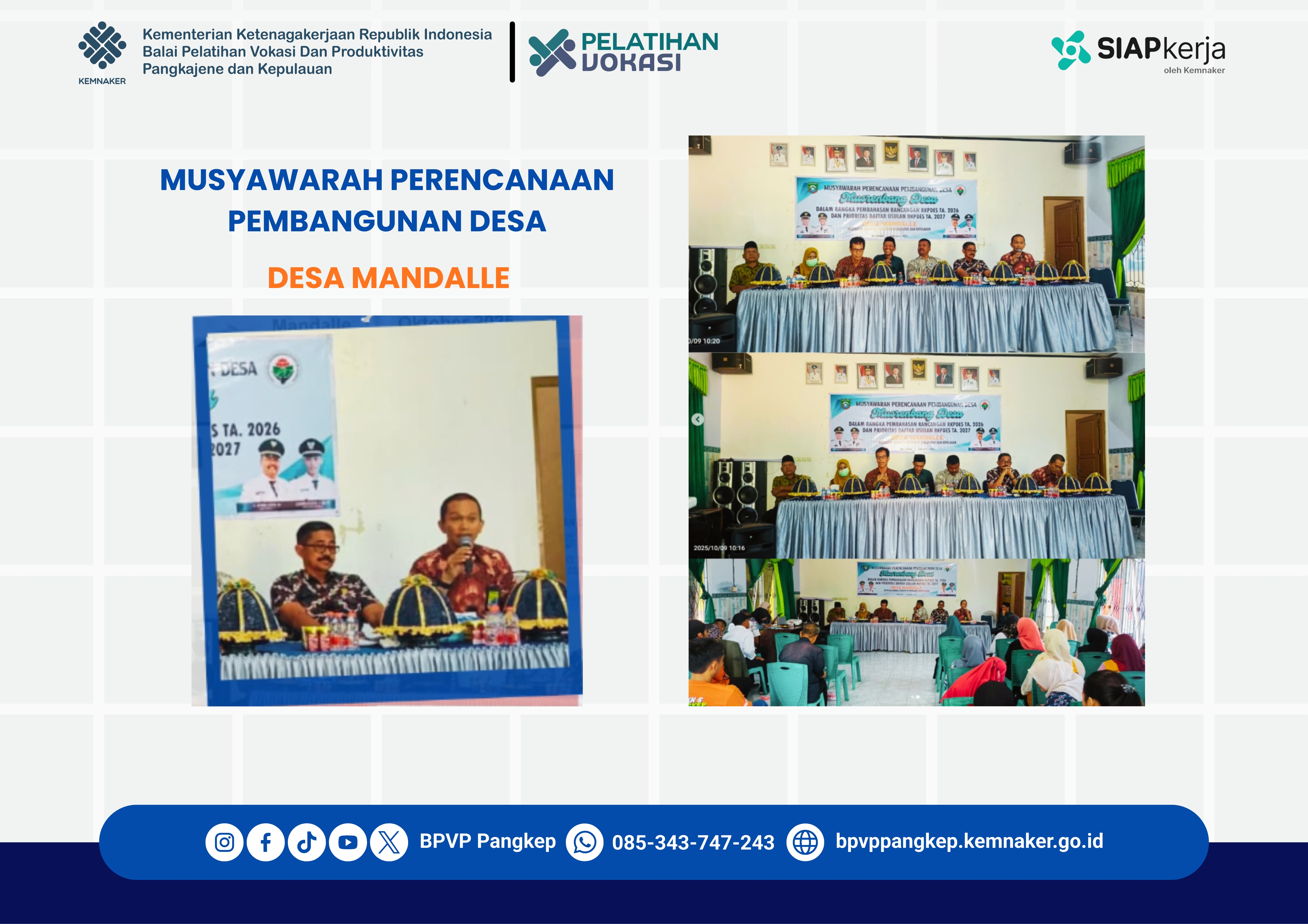Mandalle, 09 Oktober 2025 โ Kabar gembira buat warga Desa Mandalle! BPVP Pangkep baru saja ikut nimbrung dalam acara penting, yaitu Musyawarah Perencanaan Pembangunan Desa...